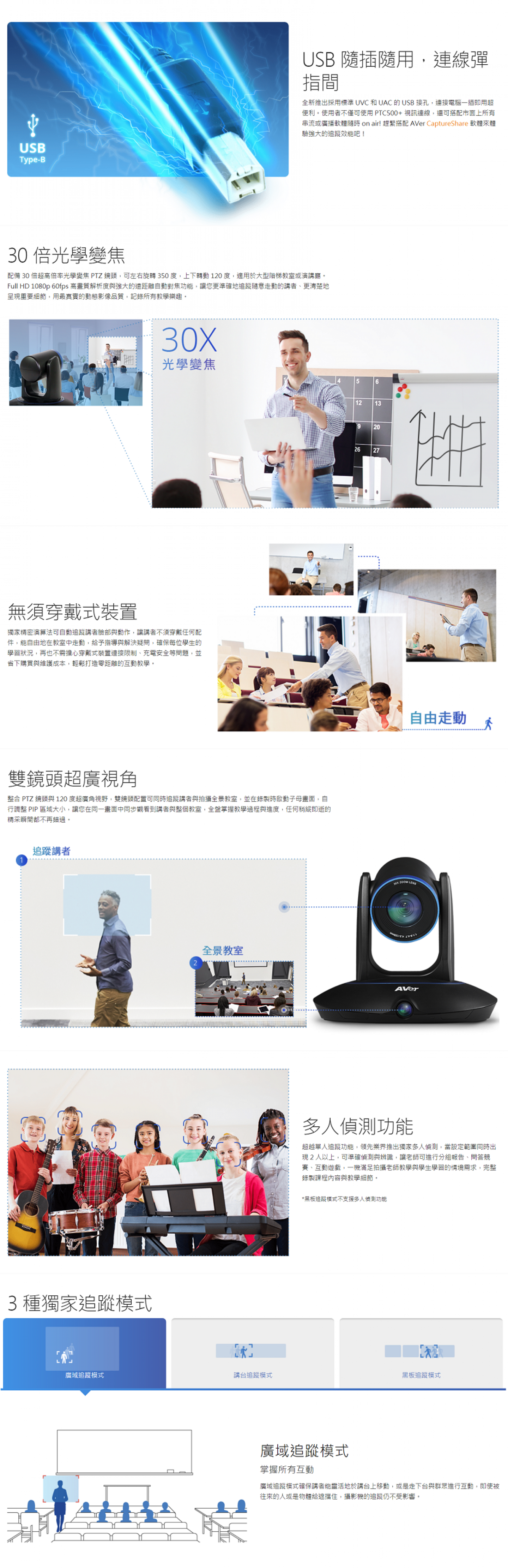 | 追蹤模式 | 廣域、講台、黑板 |